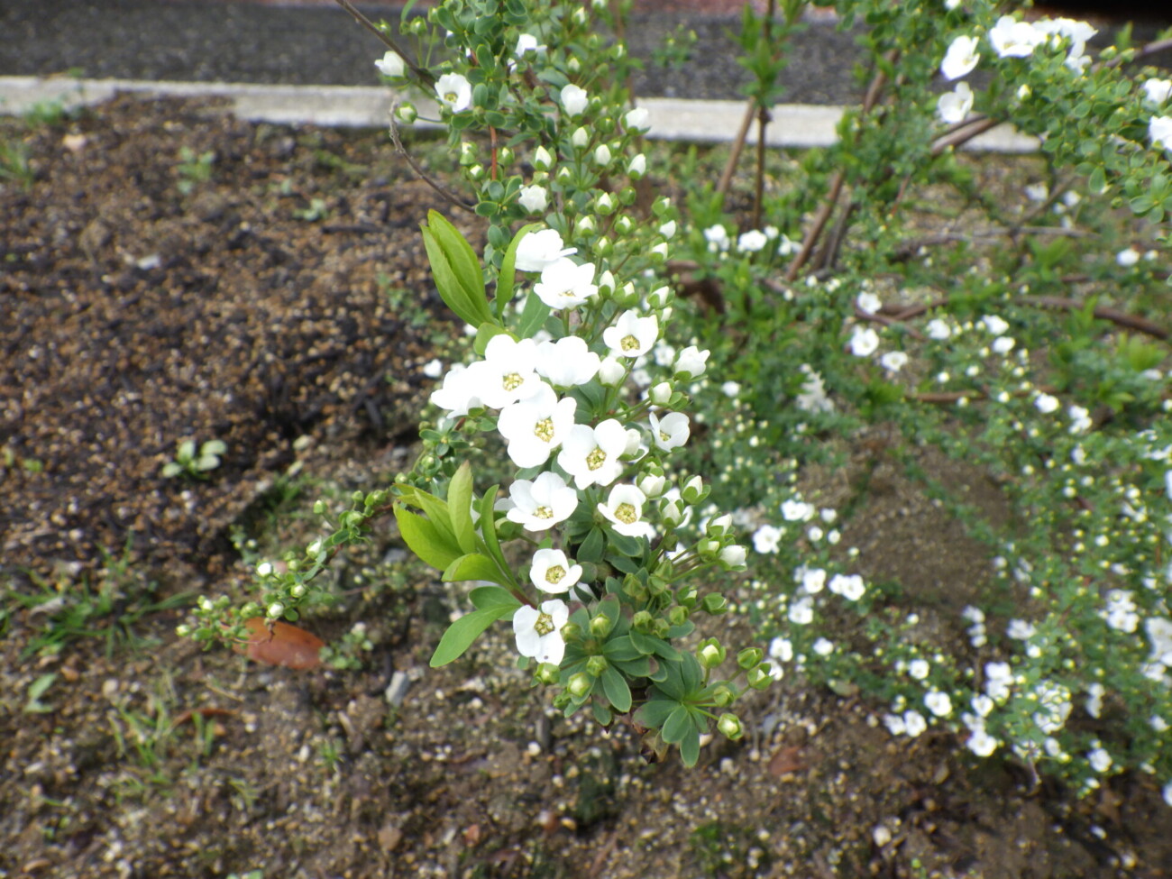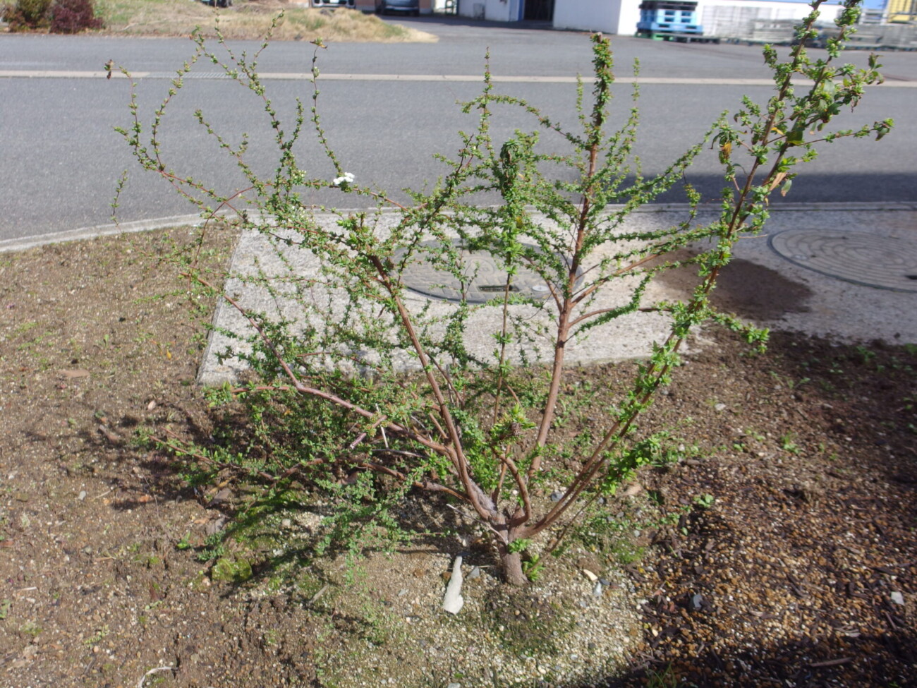 先日弊社オフィスの敷地内の白雪柳に花が咲いているのをみつけました。