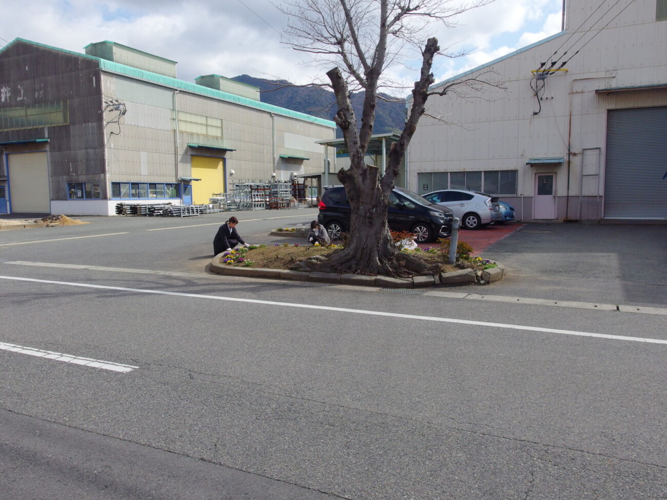 昨年より、毎日お昼休み後の15分間、女性スタッフにてオフィス周辺清掃活動・花壇の手入を行っています。
