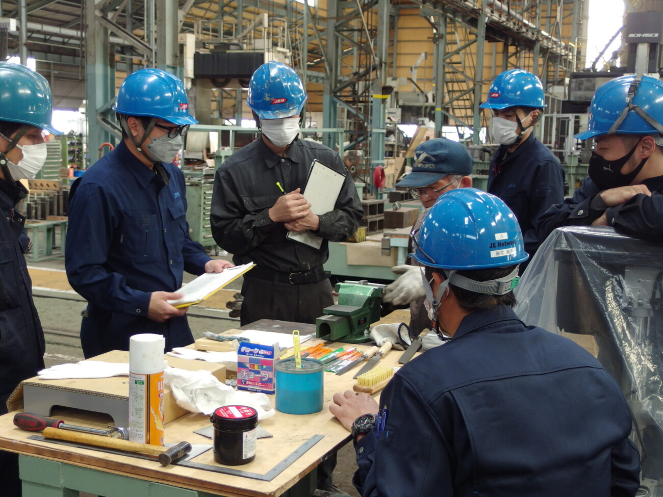 今回は熟練の弊社OBに指導員として来ていただいていますが、指導するOBの年を感じさせない情熱ぶりに、教わる側も真剣そのもの。その熱気がこちらにも伝わってきます。